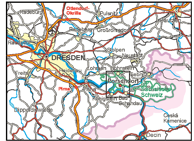 Waltersdorf nach Porschdorf. Im Ort kurz